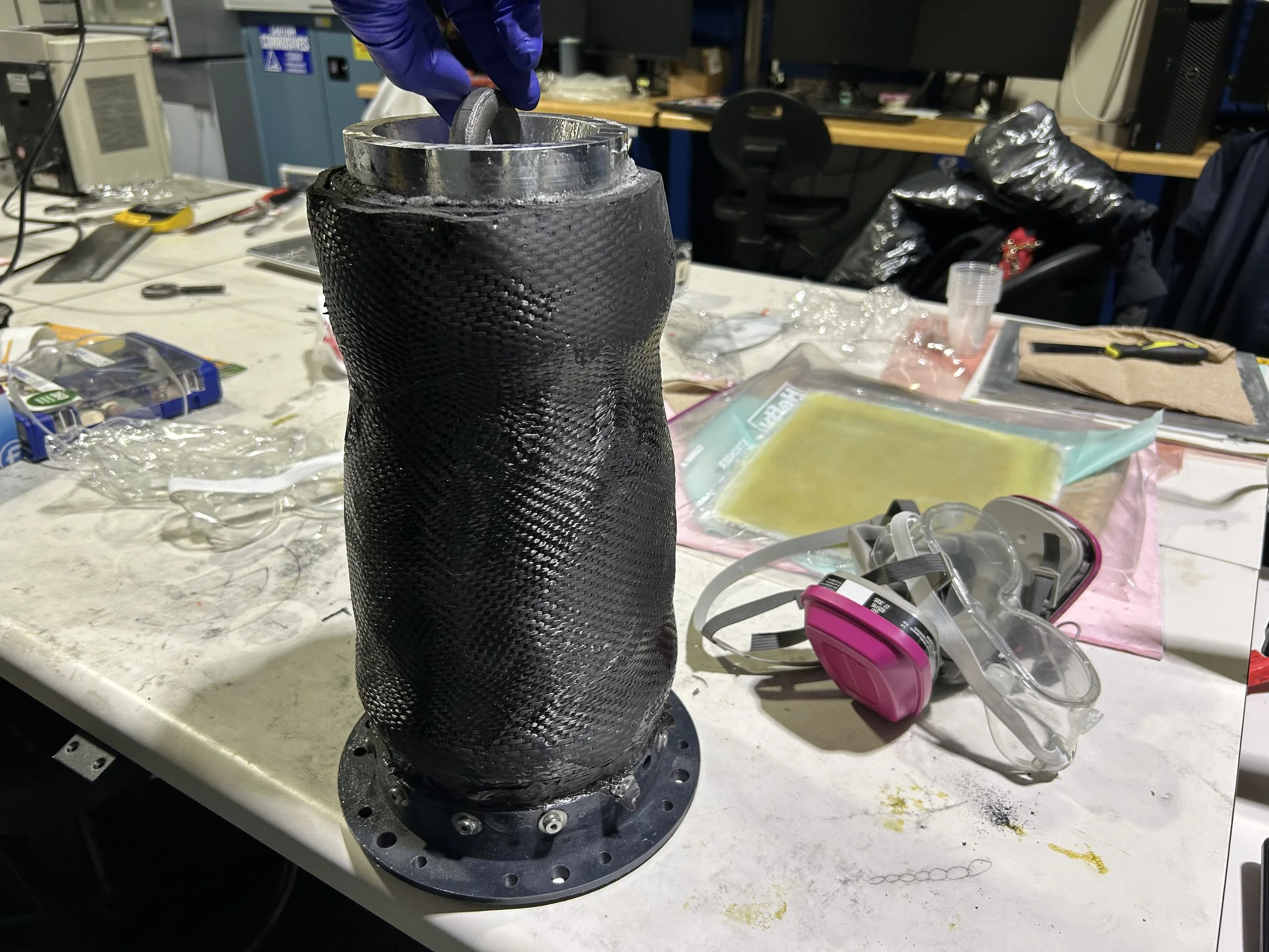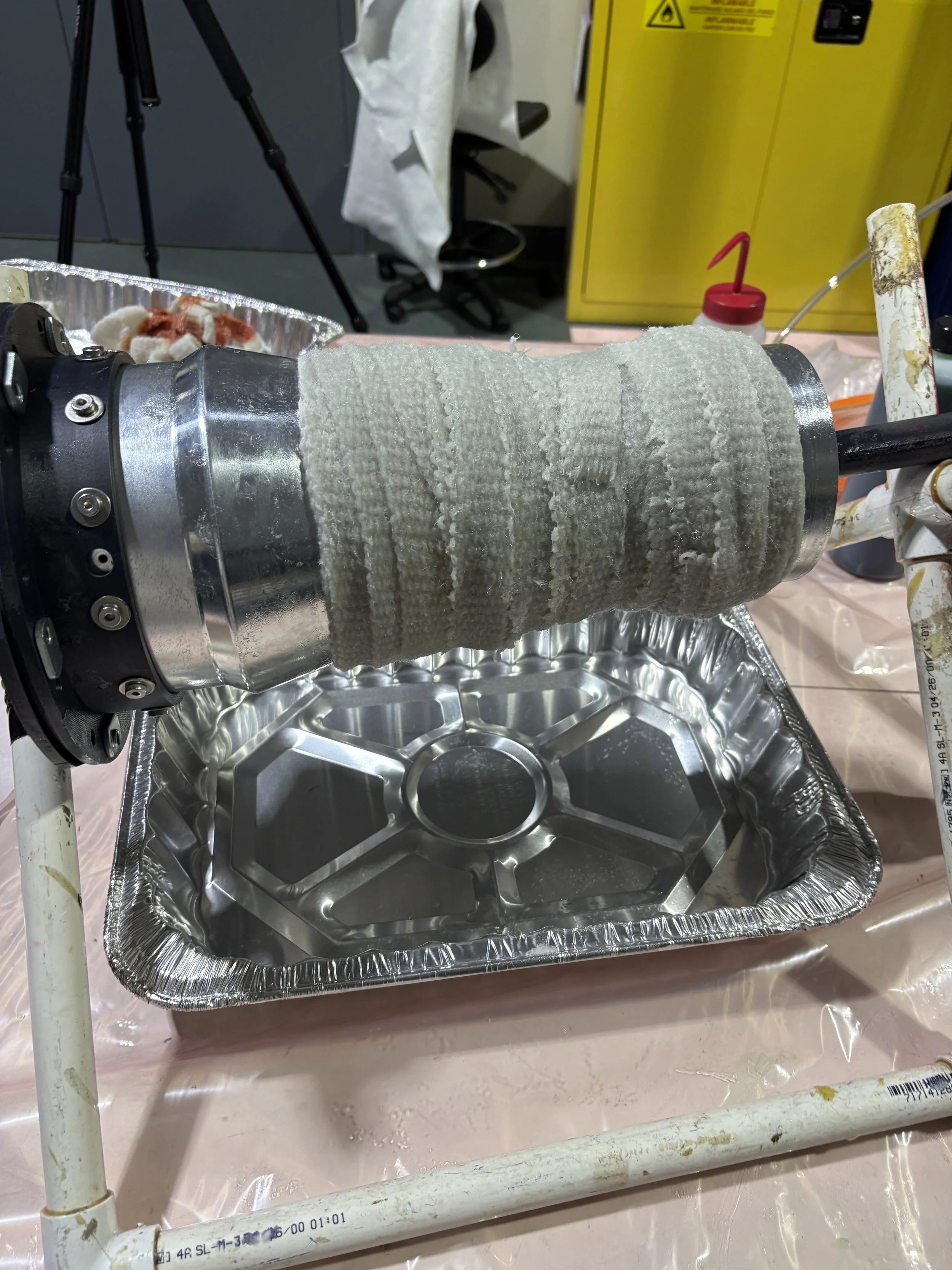Luckily, we had been preparing for this scenario with the creation of a composite engine built to replace the old assembly. I am the lead of this project, and it has finally come to fruition, as within two weeks of the nozzle shearing, all components of the composite changeover were able to be machined, prepped, and put together for hot fire.